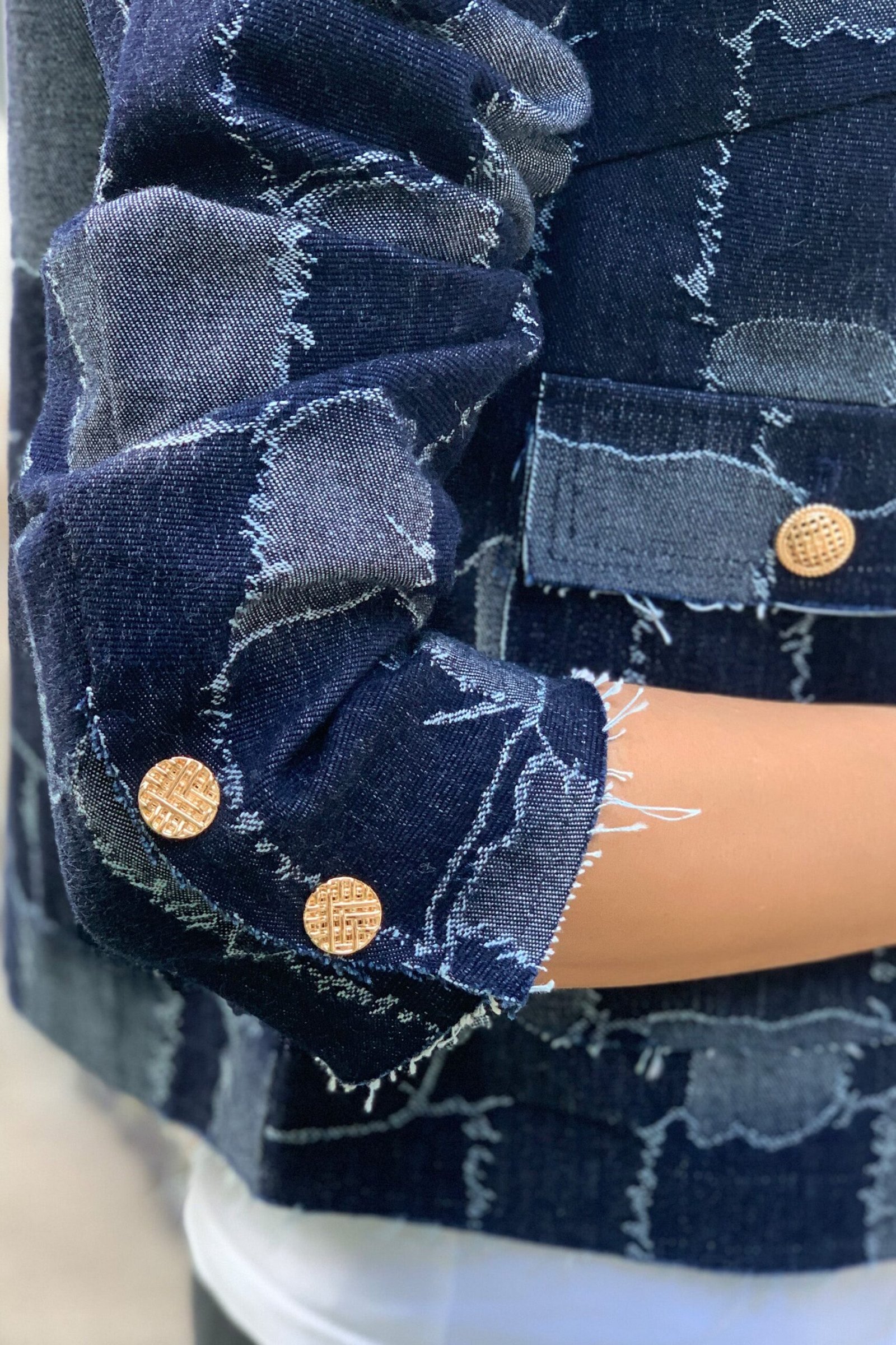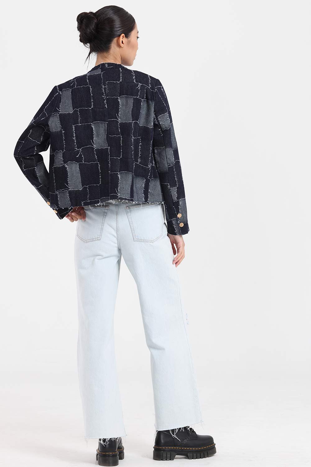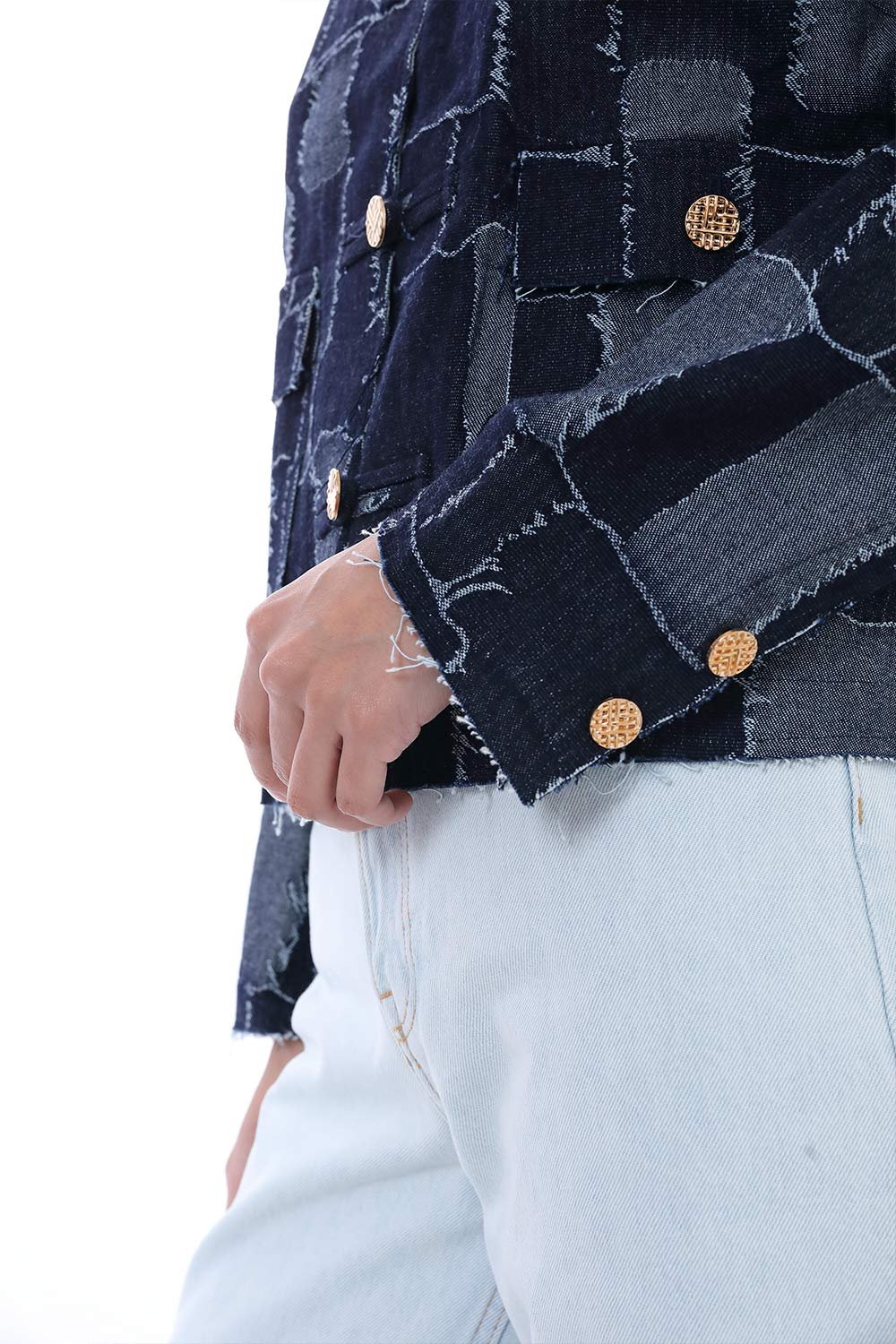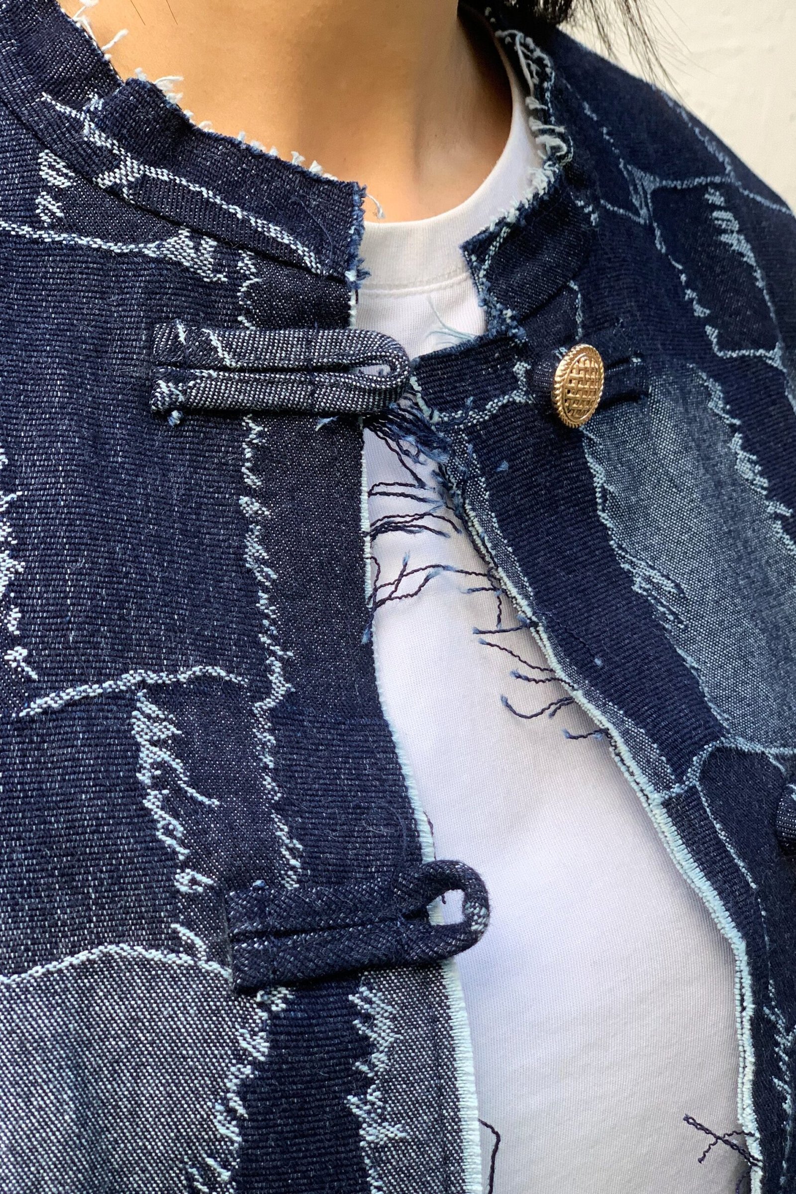 雙色牛仔布帶出立體的層次美感 .短身及腰部設計令裙子更加輕便 .兩側袋扣方便攜帶隨身物品 .前中一個中式一字排樓及口金色紐帶閃爍耀眼 .適合喜歡時尚混搭的你 .可配襯裙及褲子 .是一件時尚型格的百搭裙子。